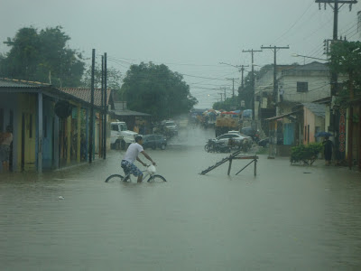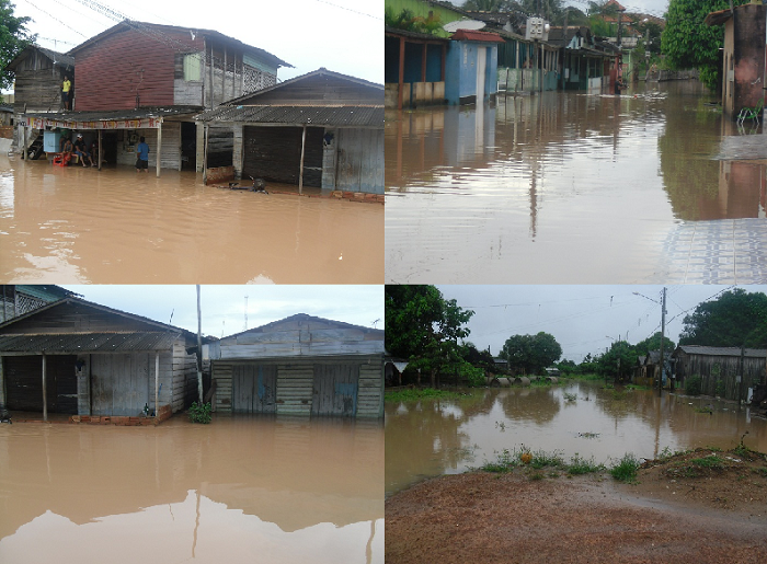 Com as chuvas torrenciais que caíram em Itaituba/PA, provavelmente desde as 3h, findando após as 12h30, de hoje, houve grandes prejuízos materiais para diversos moradores e comerciantes, principalmente nos pontos de maior alagamento, como nos bairros da Liberdade, Bela Vista, Cidade Baixa e, principalmente, Floresta.